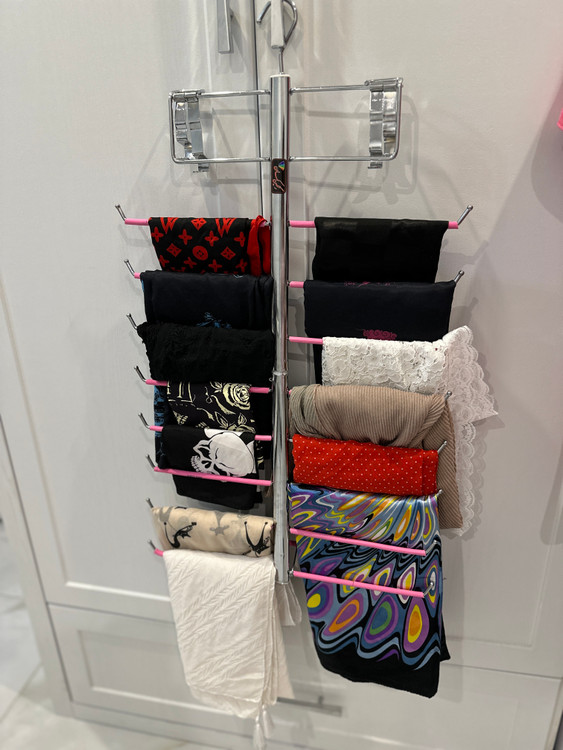 روسری و شال آویز رنگینکمان مدل صدف یک اکسسوری بسیار شیک و کارامد جهت نظم بخشیدن به روسری و شالهای داخل کمد است. یکی از ویژگیهای مهم این آویز نوع طراحی ظاهری آن است. با نصب این محصول روی درب کمد در داخل کمد میتواند کمک شایانی در مشاهده و انتخاب بهتر روسری وشال نماید. این روسری آویز دارای 8 ردیف دوتایی که میتوانید بر روی هرکدام از این آویزها چندین روسری و شال را آویزان نمود. این محصول از فلز ساخته شده که هر ردیف آن با پلاستیک روکش شده تا از صدمه زدن به روسری جلوگیری کند. لازم به ذکر است که ابعاد این محصول برابر با 46 × 36 سانتیمتر و وزن آن 1250 گرم است. این محصول علاوه بر اینکه به مرتب شدن کمد و اتاق شما کمک میکند باعث میشود تا روسریهایتان چروک هم نشود. این محصول فقط برای شال و روسری مناسب نیست بلکه میتوانیداز آن برای شال گردن، کروات و لباسهای سبک دیگر نیز استفاده کنید.