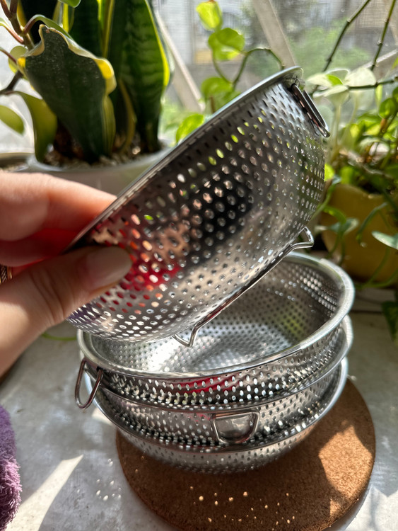 دارای پایه برای فاصله داشتن آبکش از سطح است.