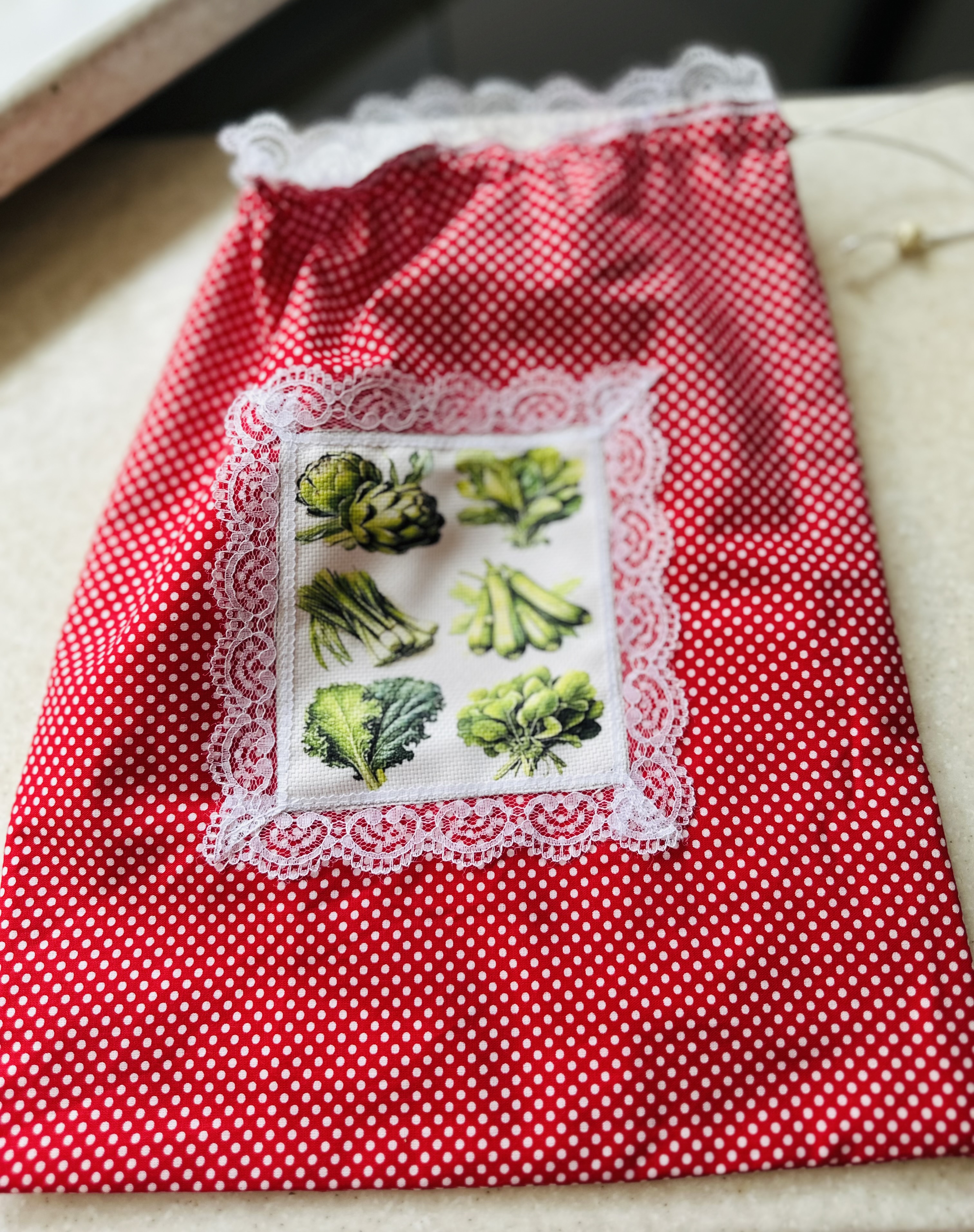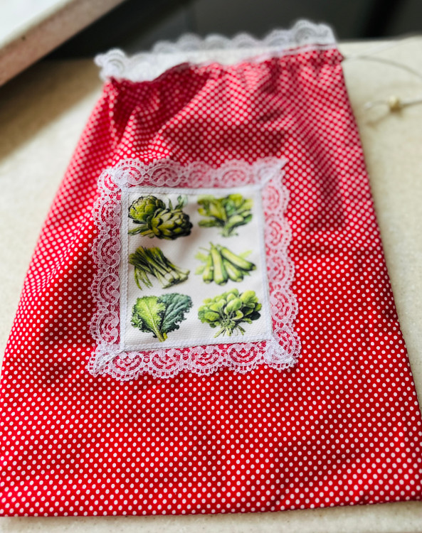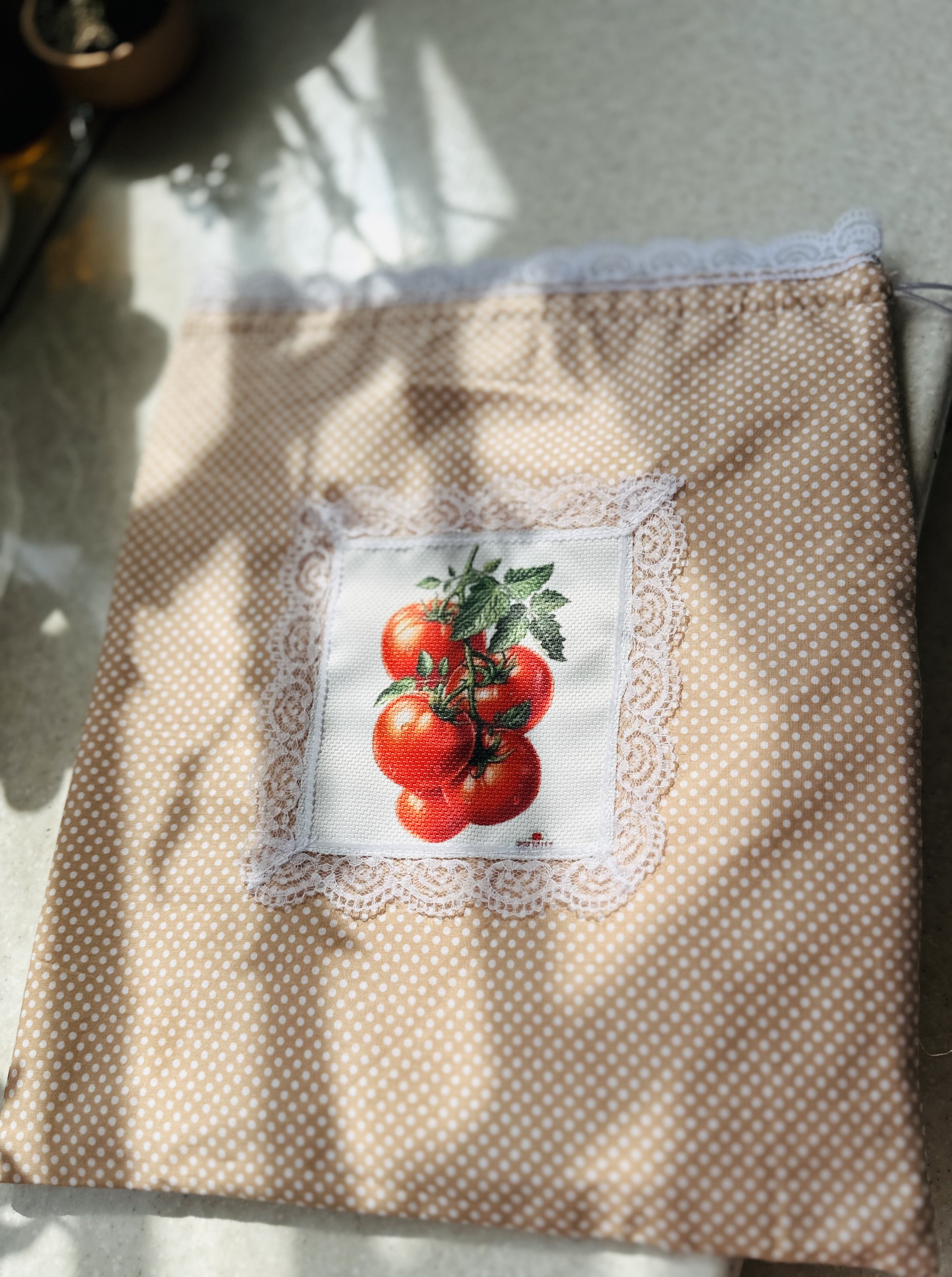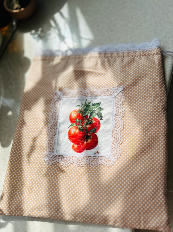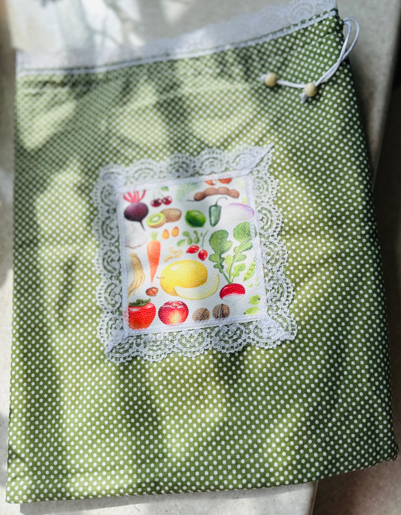 کیسه سبزی کاملا دستدوز و بسیار باکیفیت تولید شده است. دارای دولایه پارچه و بین آن ها یک لایه مشما برای جلوگیری از روند سریع پوسیدگی سبزی جات و صیفی جات است.