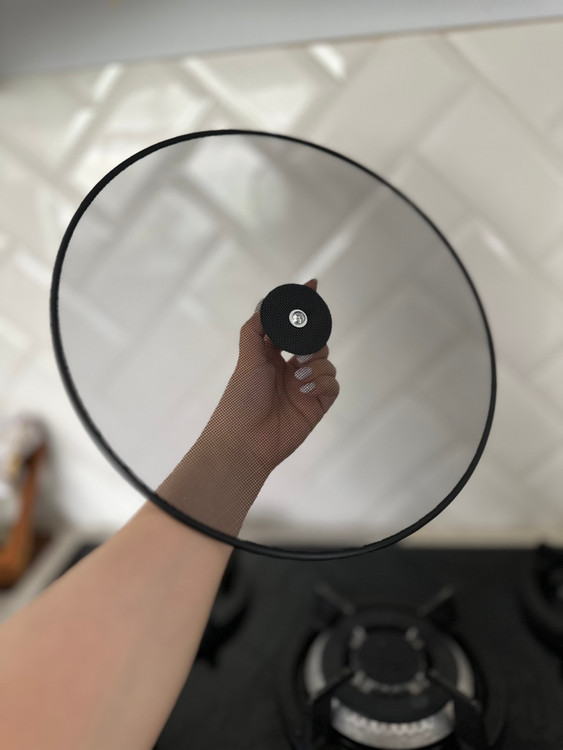 این درپوش باکیفیت دستگیره دار،برای جلوگیری از پاشش روغن به گاز و دیوار آشپزخانه مناسب است.
