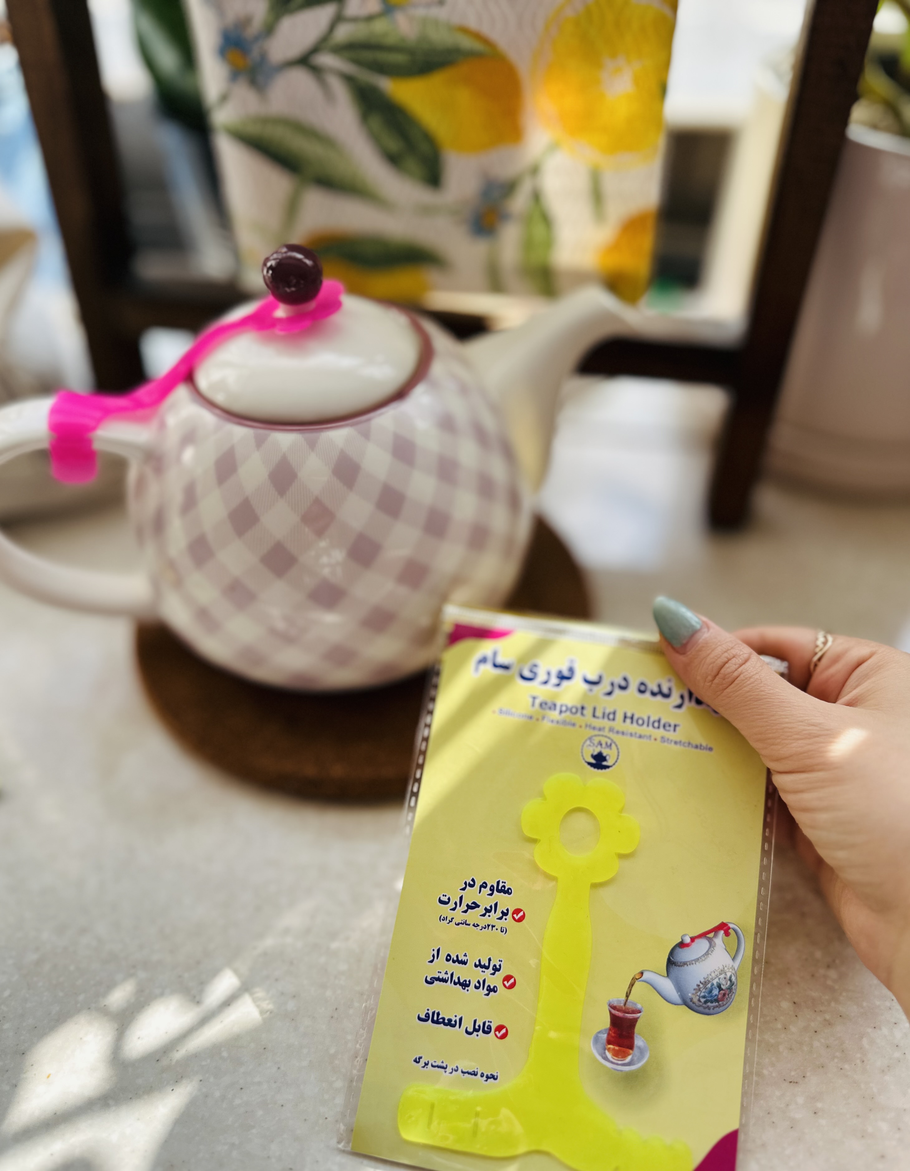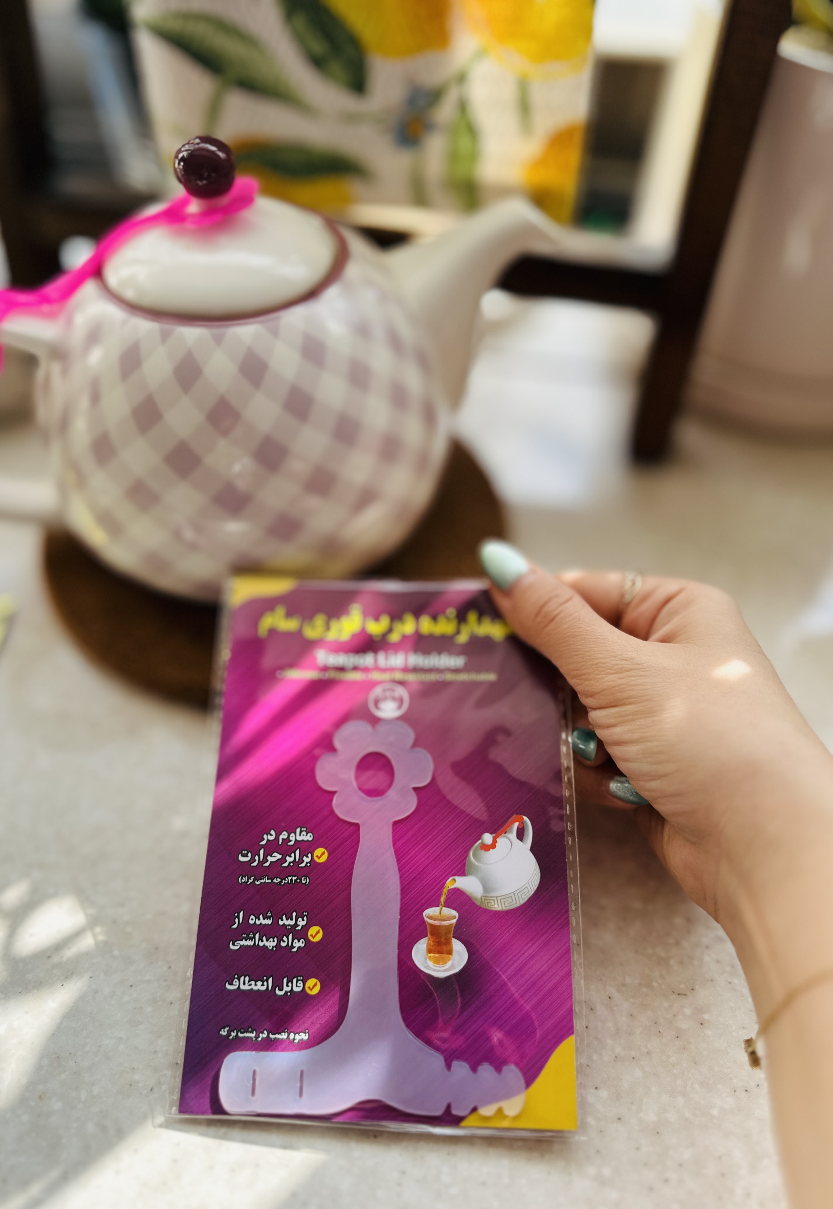 بزرگترین معزل قوری ها اینه که دربشان هنگام ریختن چای، می افتند و اغلب با بند و چیزهای دیگر به بدنه وصل میکنیم که این کار چهره ی زشتی به قوری میدهند، این ابزار یکی از پرکاربردترین های آشپزخانه است.و به راحتی درب قوری را به بدنه متصل میکند.