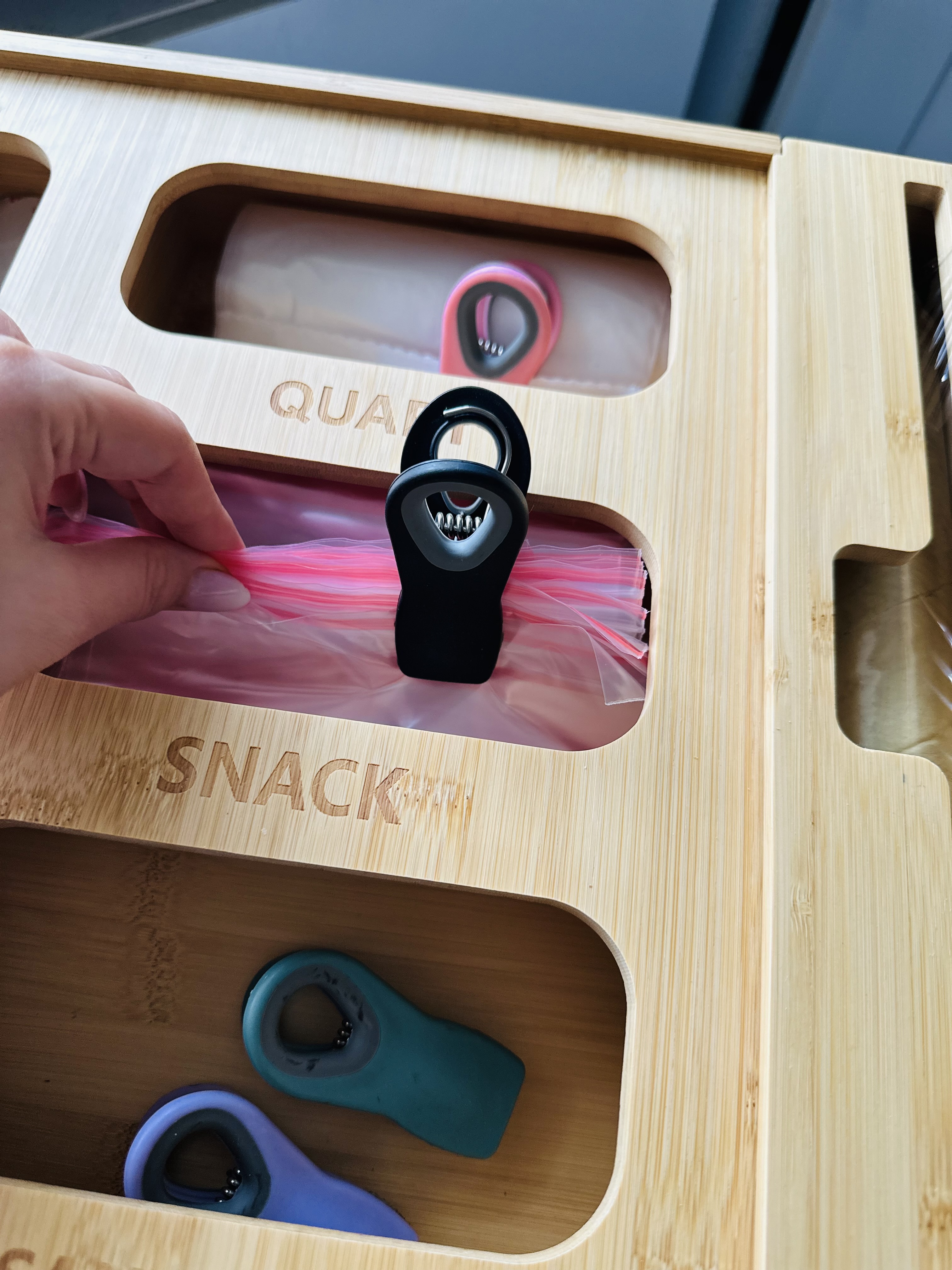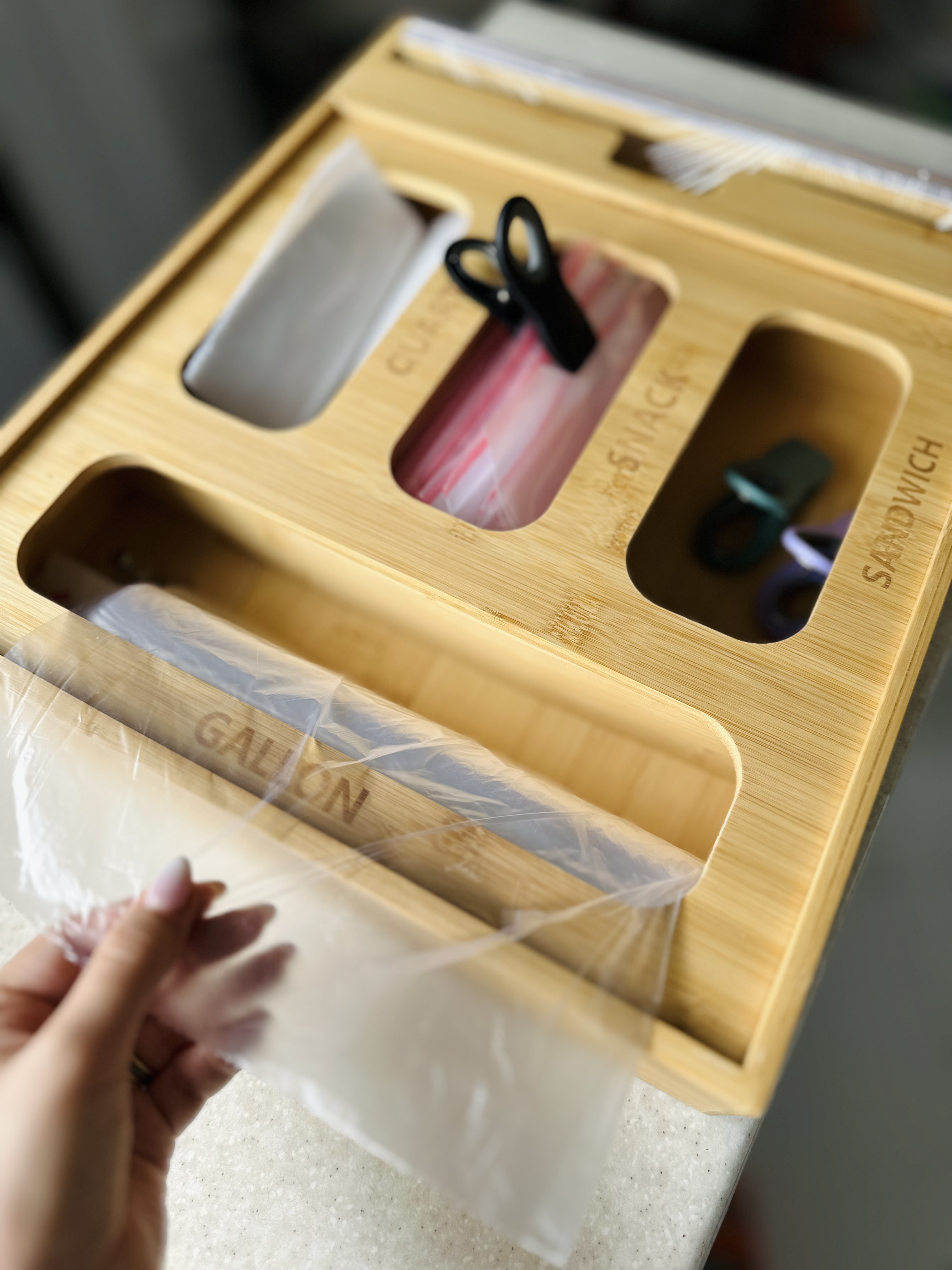 دارای پنج خانه برای ساماندهی پلاستیک ساندویچ،زیپ کیپ ها، مشما فریزر، سلفون به کار میرود.